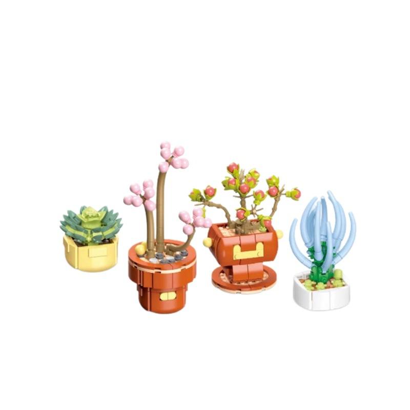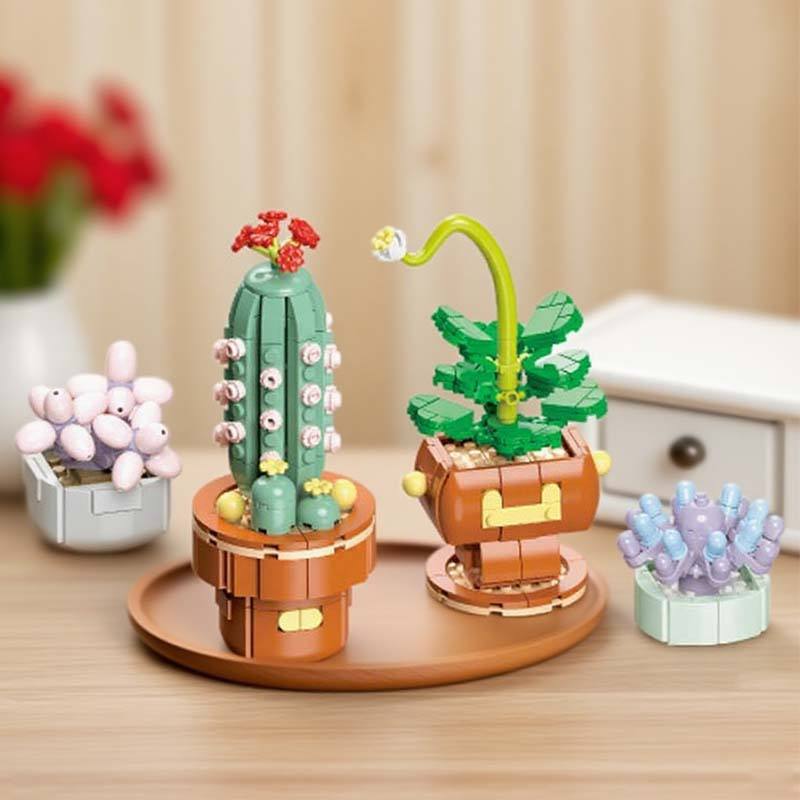 Bloques de Construcción de Partículas Pequeñas, Planta Artificial en Maceta, Cactus Combinado, Torre de Flores Mágica, Adorno de Escritorio