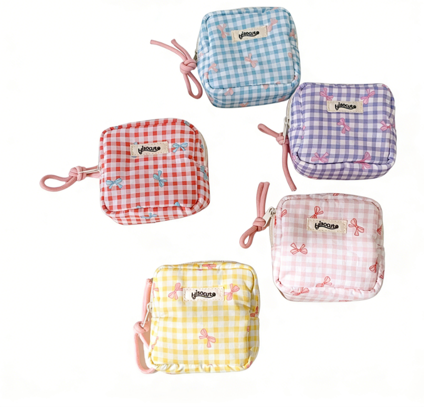 Bolsa de Maquillaje Pequeña a Cuadros, Bolsa de Almacenamiento Portátil para Cosméticos y Lápiz Labial, Diseño Cuadrado Simple