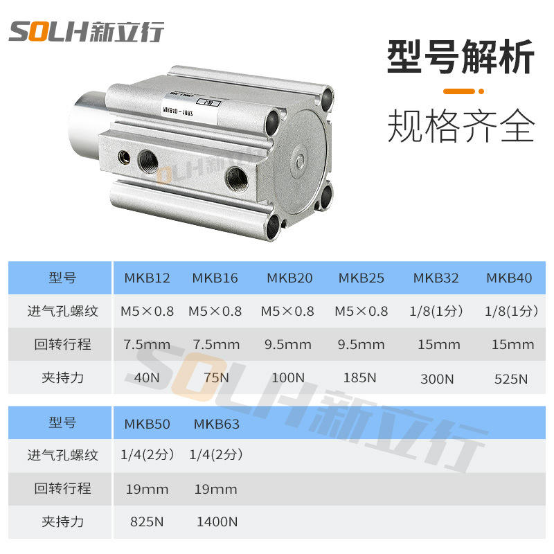Cilindro Neumático Pequeño de Rotación de 90 Grados, Rotatorio MKB40/50/63-10/20/30R/L con Pistón y Componentes Centrales de Sellado