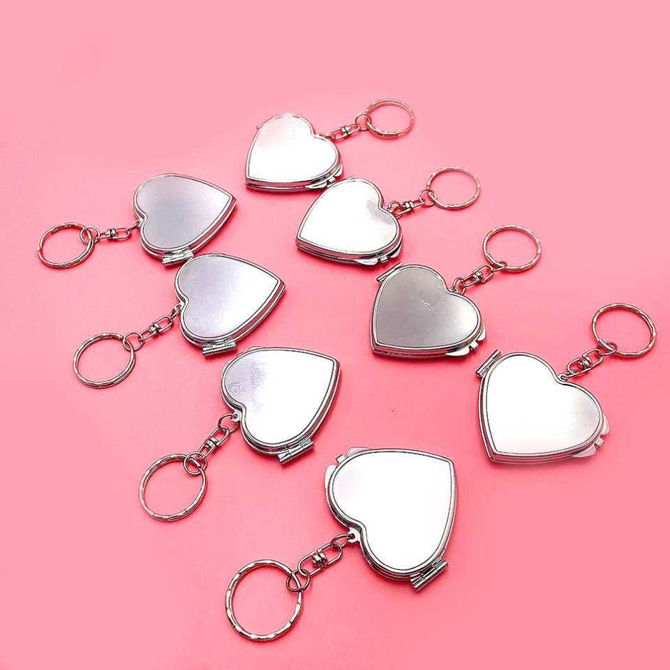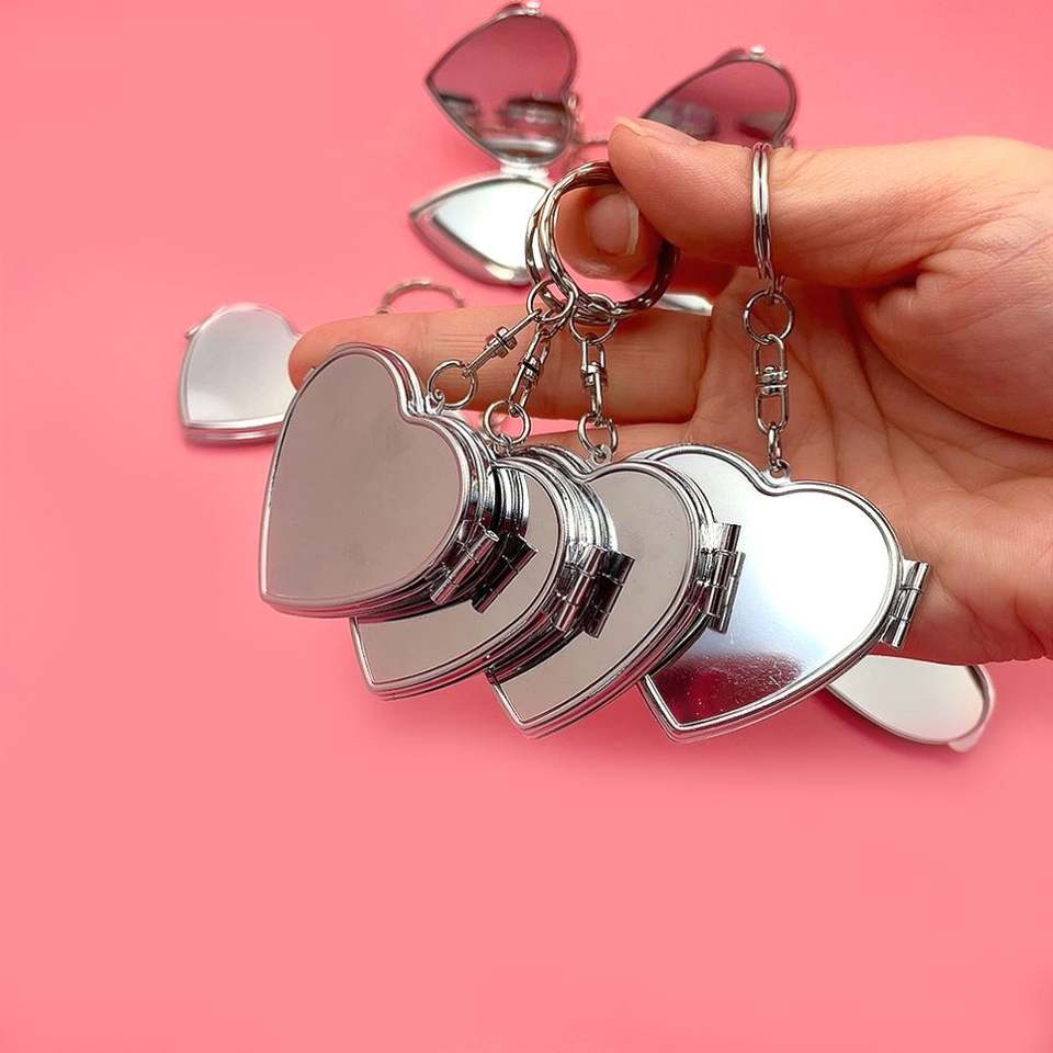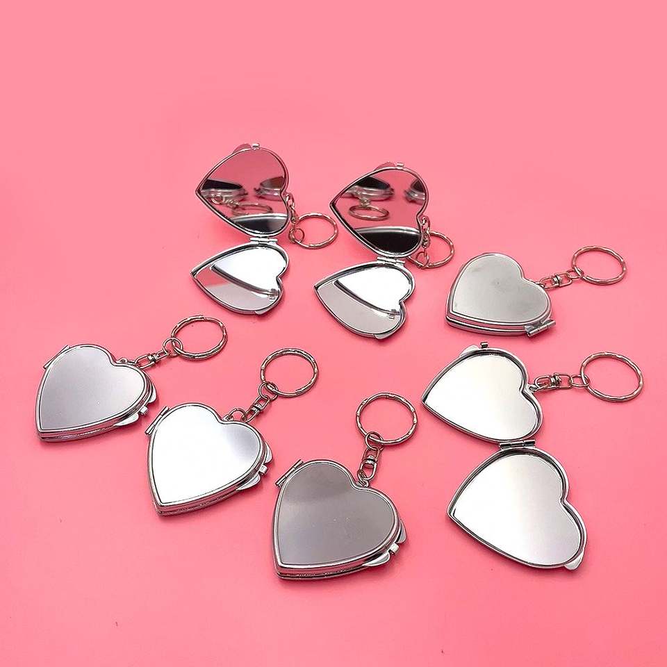 Espejo de Maquillaje Mini Portátil, Metálico, con Forma de Corazón, Accesorio para Llavero DIY