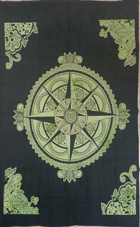 Pequeño Tapiz de Algodón con Estampado de Estrella y Brújula, Hecho a Mano, Decoración para Puerta, Tapiz para Colgar en la Pared, por Indian Consigners