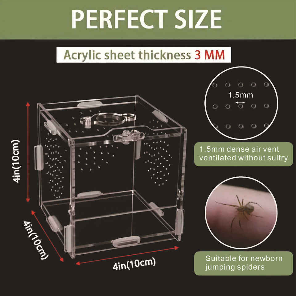 Caja de Cría para Reptiles Pequeños, Recinto Cúbico para Arañas, Mantis, Arañas Saltadoras, Tarántulas y Lagartos