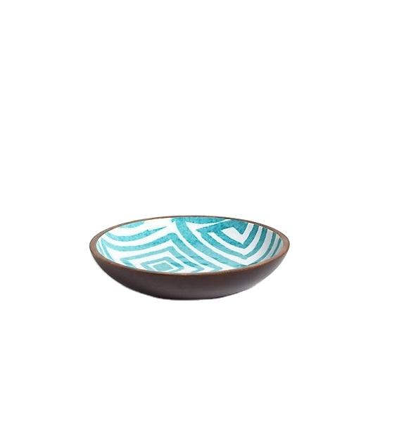 Cuenco de plato redondo pequeño Mango de madera de alta calidad Artículos de cocina más vendidos Calcomanía impresa de resina de nuevo diseño