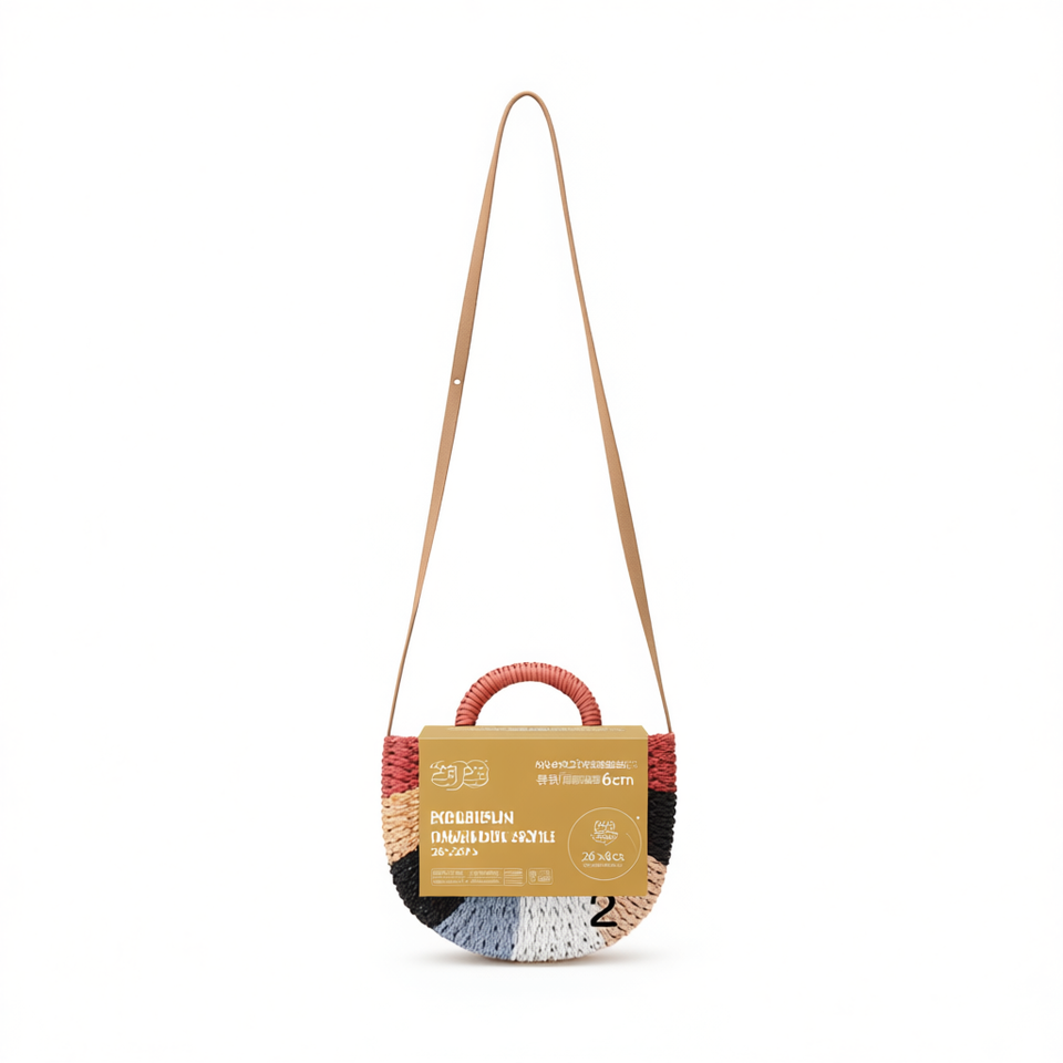 Bolso de Mano Pequeño Semicircular de Papel Tejido, Bolso Bandolera de 26x23x6cm, Bolso de Hombro para Mujer