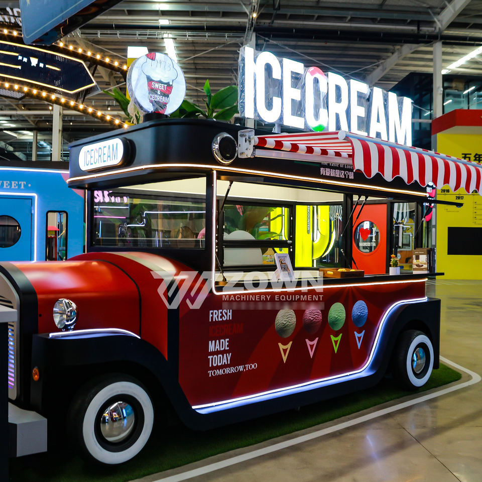 Carrito de Comida Móvil de Tamaño Pequeño, Mini Food Truck Ideal para Venta en Calles Estrechas, Negocio de Helados, Café y Snacks con Equipamiento Completo