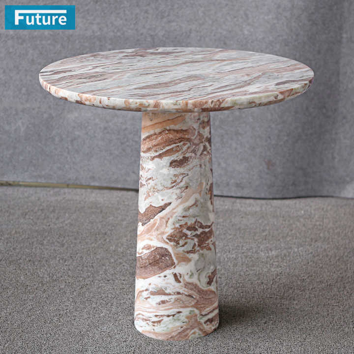 Mesa Auxiliar Redonda de Mármol Marrón Toronto, Diseño Moderno, Base Baja, Piedra Natural, Tamaño Pequeño, para Decoración de Hotel, Cafetería, Villa