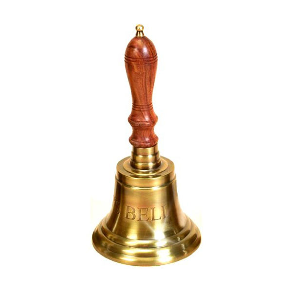 Campana de latón redonda de Metal hecha a mano para exteriores de tamaño pequeño Campana de acabado dorado Diseño hecho a mano con mango de latón