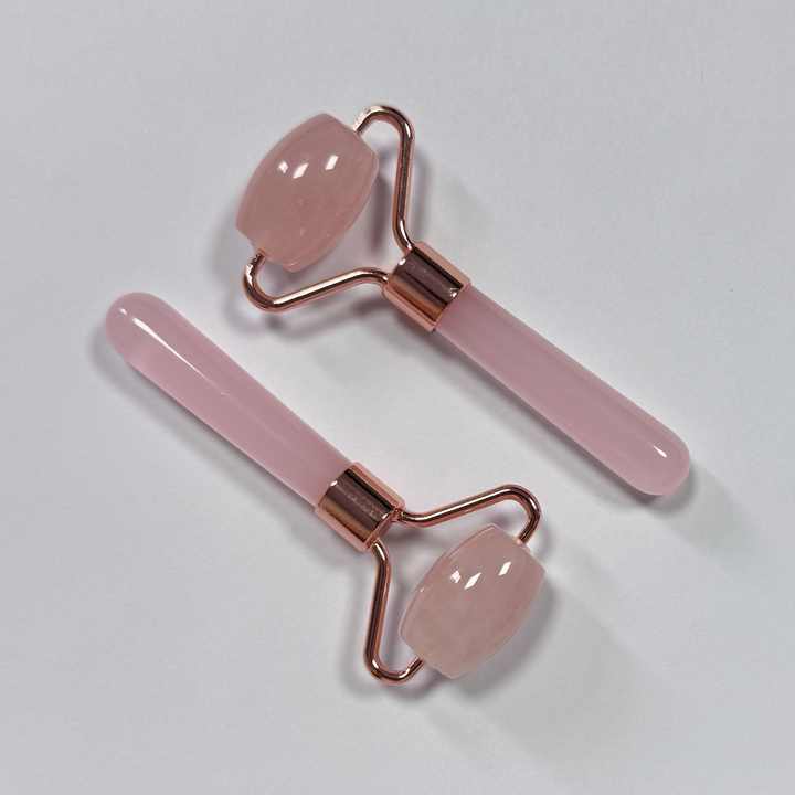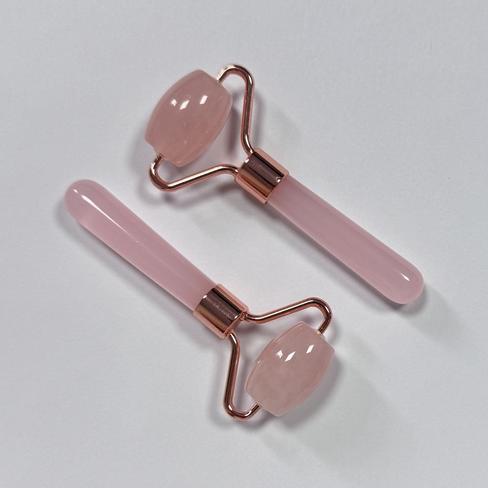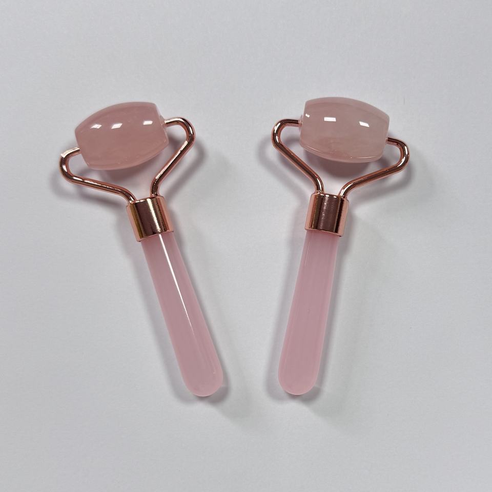 Rodillo facial de cuarzo rosa de tamaño pequeño y un solo cabezal para masaje facial