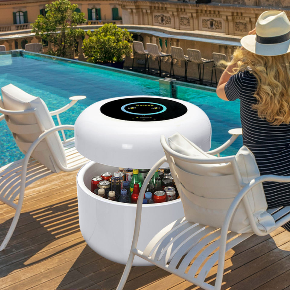 Detalles del embalaje:Small Spaces Apartment Furniture Smart Metal Speaker Blue-teeth Coffee Table Outdoor Garden Tea Coffee Tables with Refrigerator
