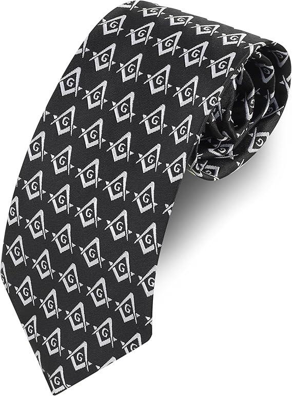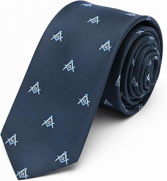 Corbata Masónica Pequeña con Diseño de Cuadrado y Compás - [Azul y Blanco] Aproximadamente 56 Pulgadas de Largo y 3 Pulgadas de Ancho Hecha de Poliéster