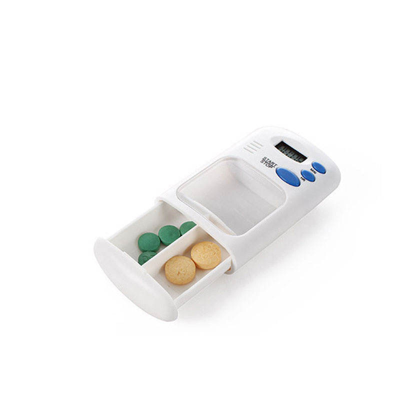 Caja de medicina portátil con temporizador pequeño, nuevo recordatorio de tiempo personalizado, temporizador inteligente, pastillero electrónico, Mini diseño inteligente de plástico, bonito blanco