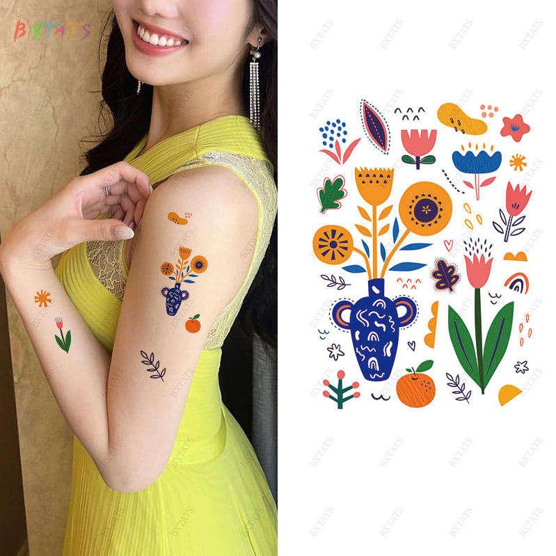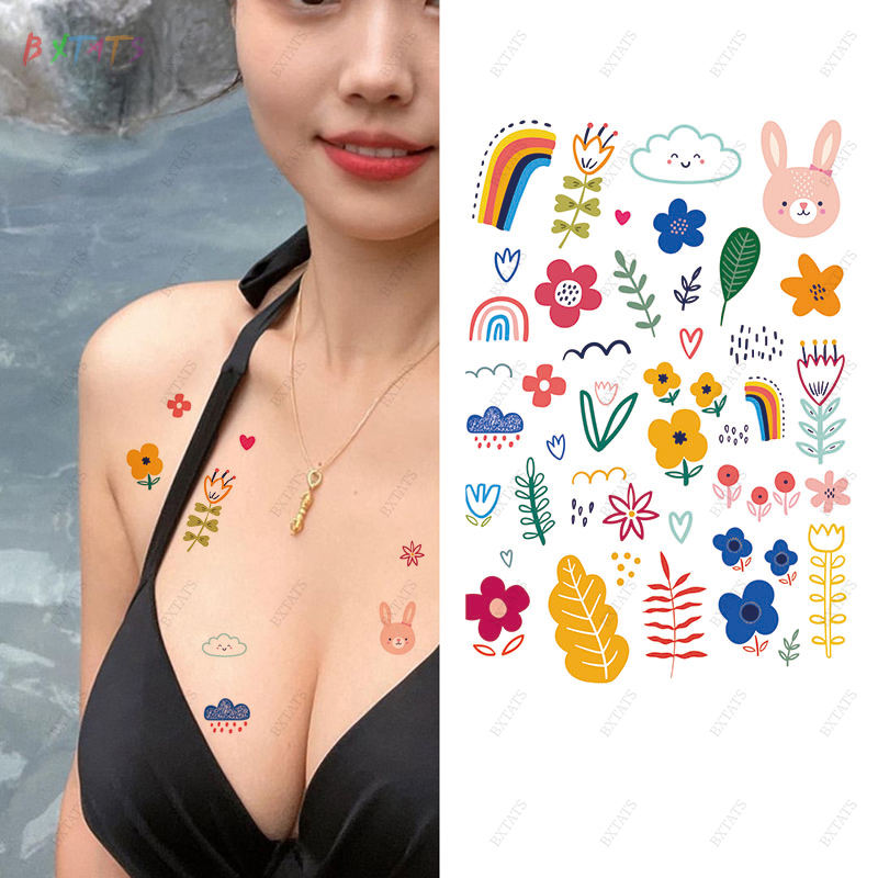 Tatuaje de flor de transferencia pequeña Tatuaje de dedo de color temporal pequeño Se pueden obtener más de 20 pegatinas de tatuaje de una imagen