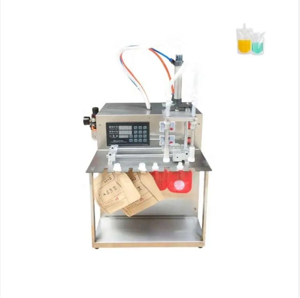 Máquina de llenado de limpiador de bolsa de pico de dos cabezas pequeña, bolsa de succión de boquilla, sellador de llenado de botellas