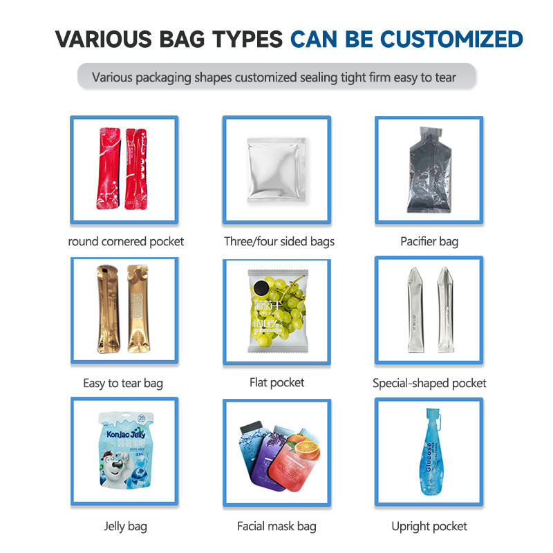 Tipo de bolsa:Sellado en 3/4 lados/Sellado trasero/Forma irregular