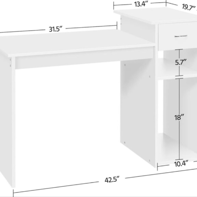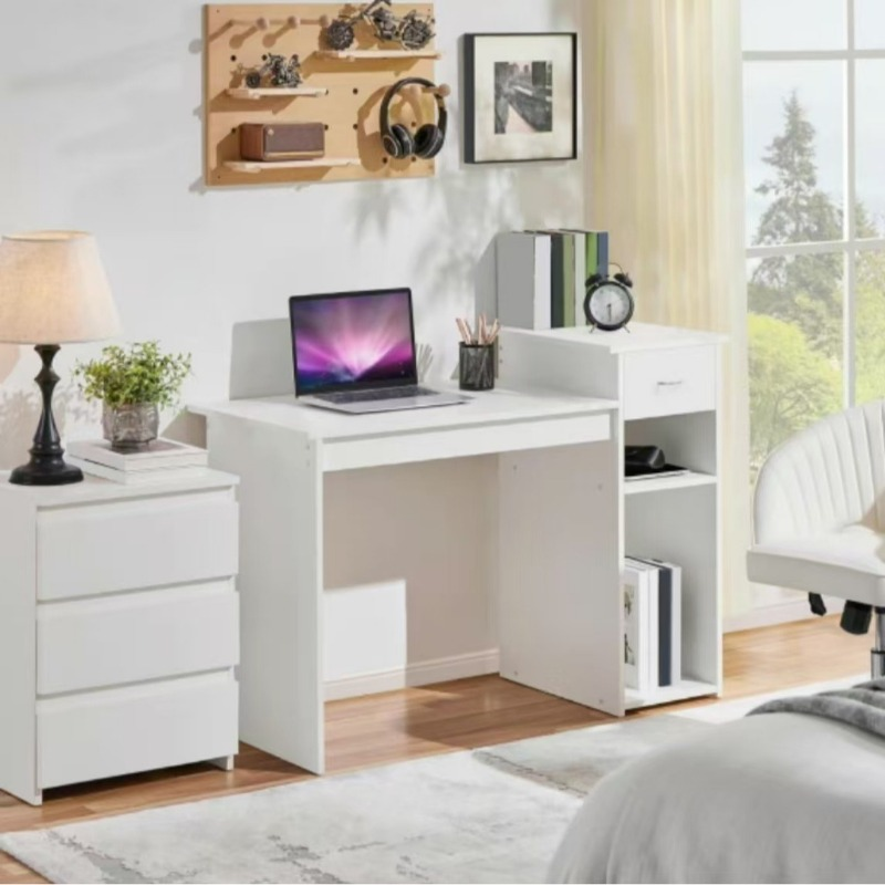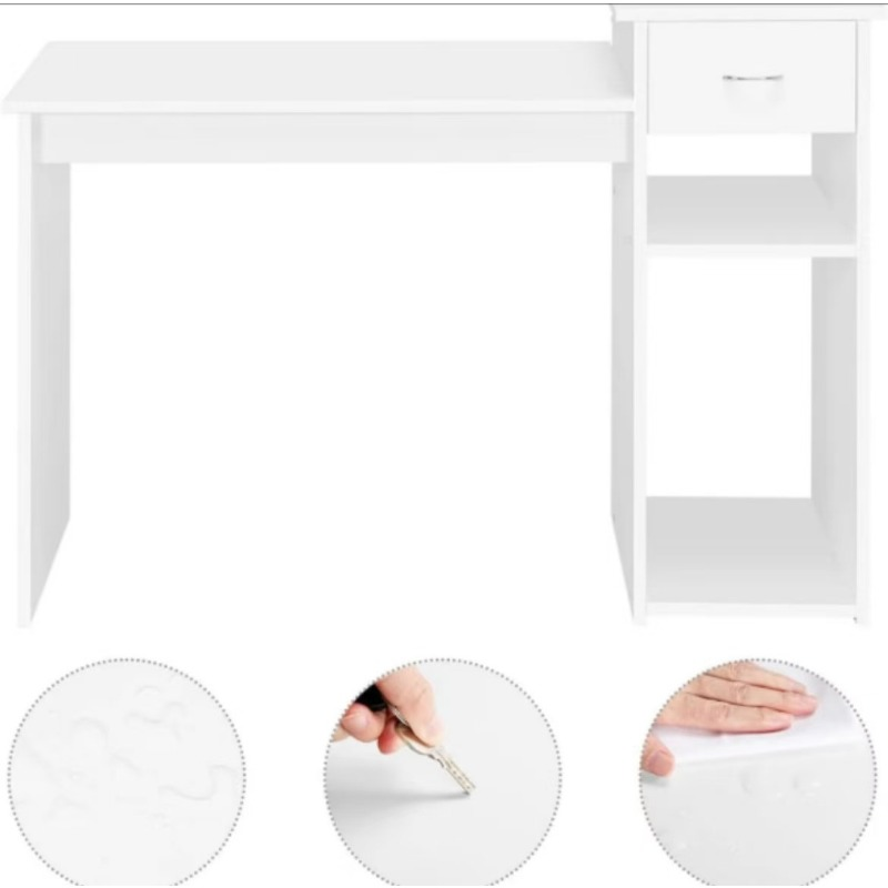 Pequeño escritorio blanco para ordenador con cajones y estante para impresoras, estudio de madera y Escritorio