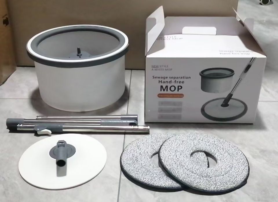 Fregona Mágica Blanca Pequeña Turbo Spin Telescópica Redonda con Separación de Aguas Residuales y Cubo Escurridor Manos Libres