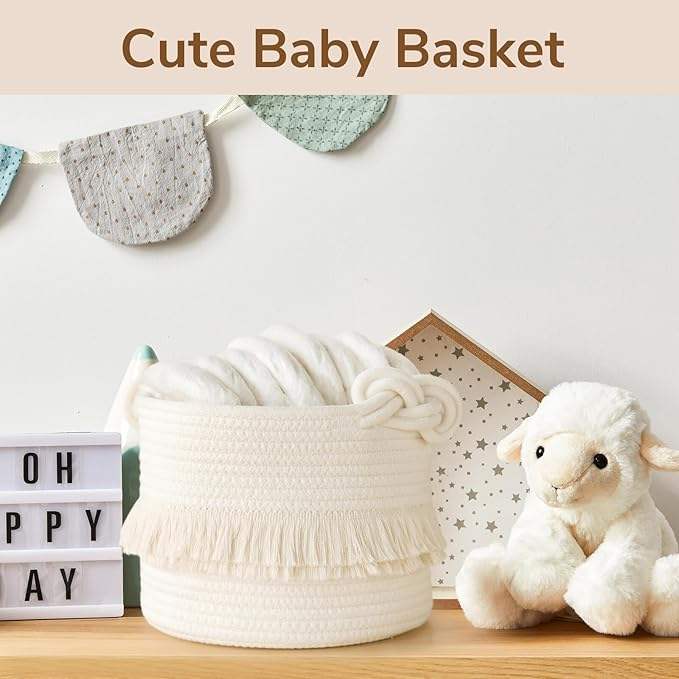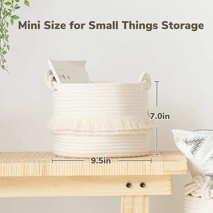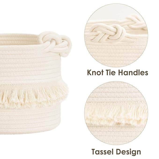 Cesta de Almacenamiento Pequeña de Cuerda de Algodón Tejida con Borla, Cesto Decorativo para Guardar Pañales, Mantas, Revistas y Llaves