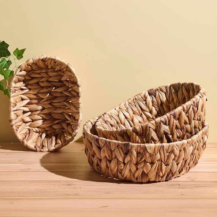 Cestas pequeñas para la organización del hogar, cesta de jacinto de agua tejida a mano, contenedor de almacenamiento al precio más bajo