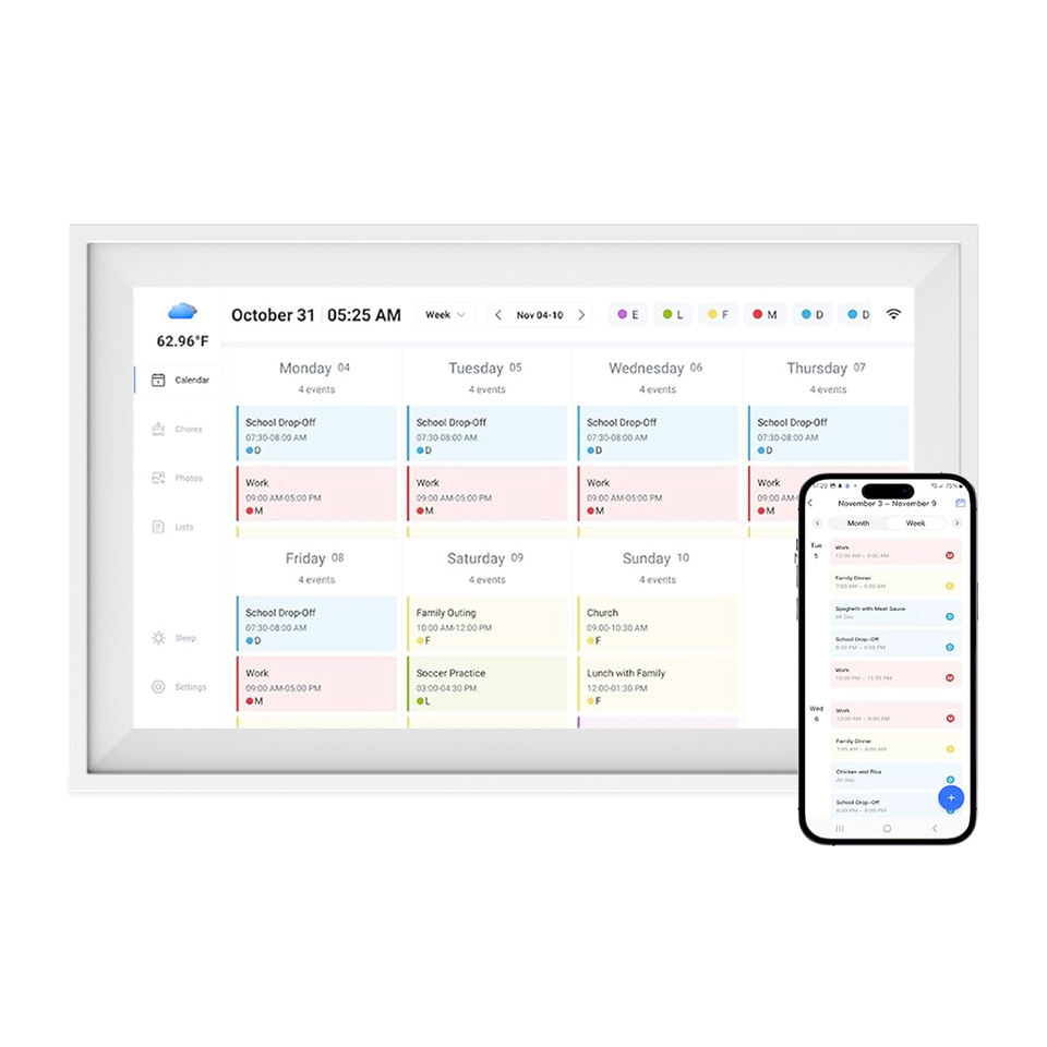 Calendario Digital Inteligente de Pared de 10.1/15.6 Pulgadas con Marco Acrílico, Reloj con Reproducción de Video WiFi y MP3, Compatible con Formato AVI y MP4