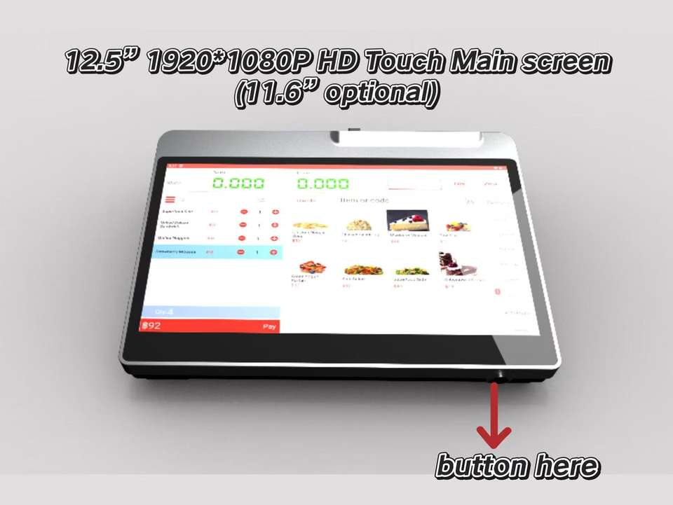 Sistema POS Inteligente con Pantalla Táctil de 11.6 Pulgadas/12.5 Pulgadas, Caja Registradora con Impresora de Tickets Integrada de 80 mm para Terminal POS de Venta Minorista