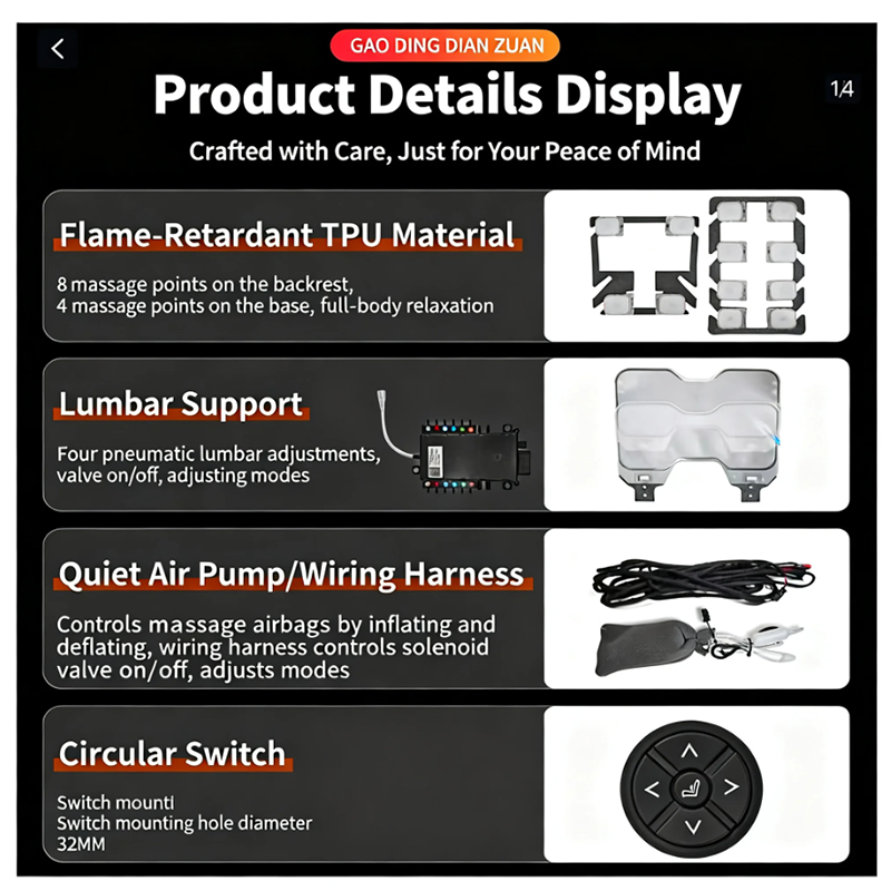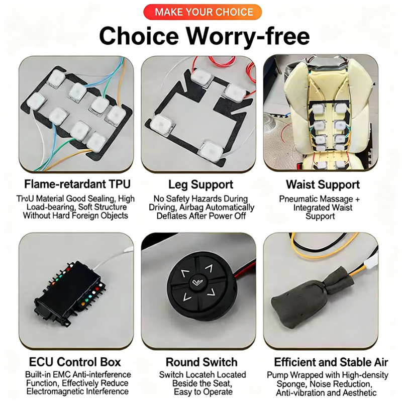 Masajeador de Asiento de Coche Inteligente con 12 Puntos de Presión, Bolsa de Aire Integrada, Soporte Lumbar Neumático de 4 Vías para Toyota Land Cruiser Universal