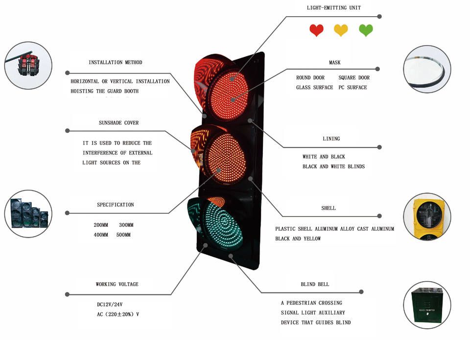 Semáforo LED para vehículos inteligente de 300mm, semáforos Para 12-24V, señales de tráfico duraderas para vehículos