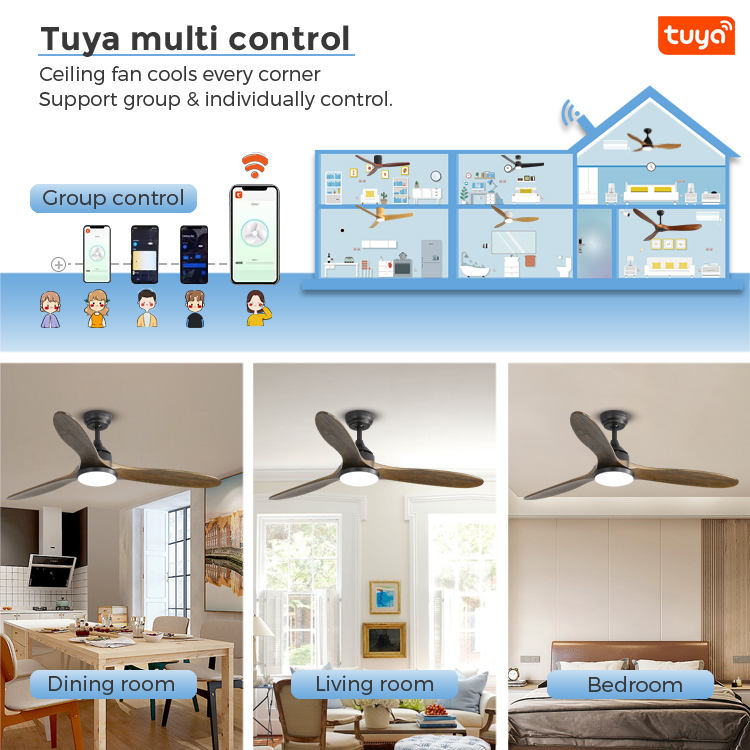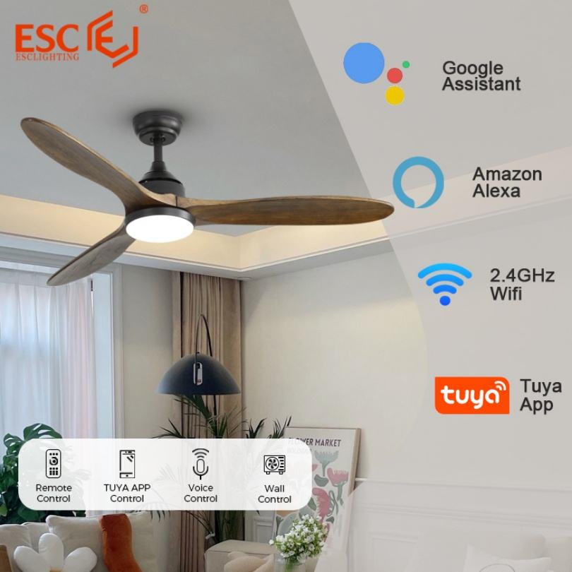 Ventilador de Techo Inteligente con 5 Velocidades y Luces LED, Ventilador de Techo de Madera Maciza de 52 Pulgadas con Control Remoto y Luces LED
