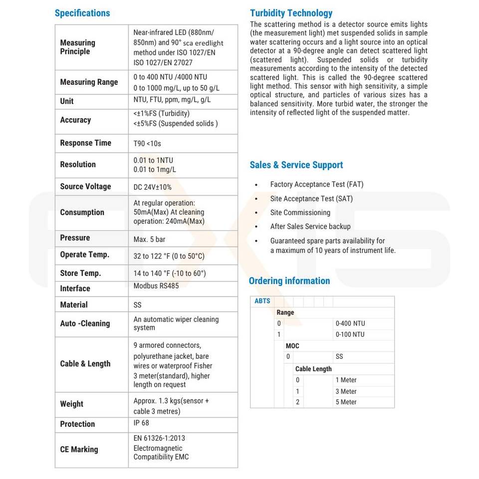Measurement range:0 to 400 NTU /4000 NTU