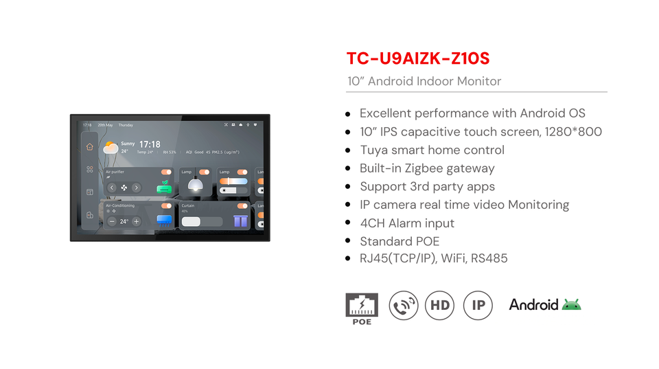 Videoportero Inteligente Android POE de 10 Pulgadas, Centro de Seguridad y Sistema de Automatización para el Hogar, Centro Inteligente de Seguridad para el Hogar