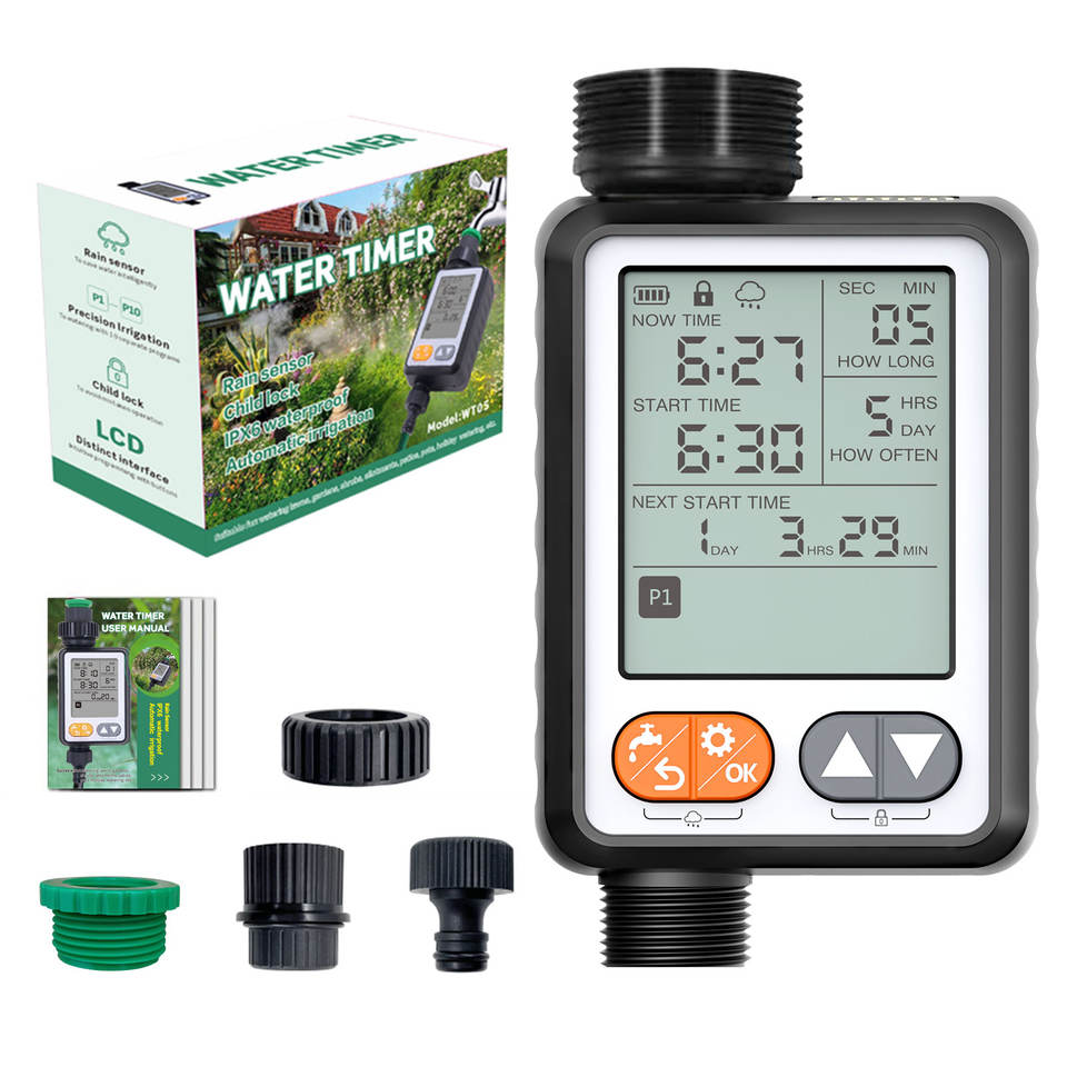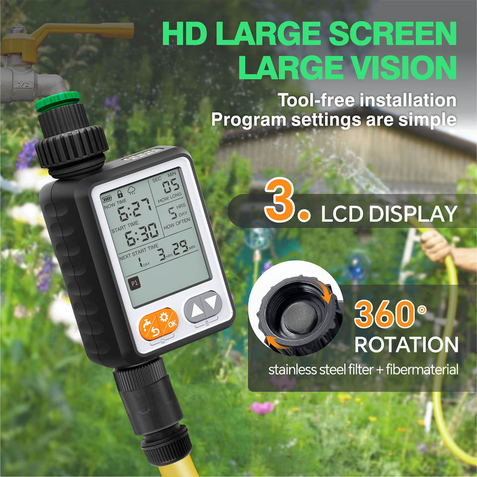 Temporizador de Agua Automático Inteligente y Duradero de Plástico para Riego de Jardín, Nuevo Diseño con 10 Programas Separados para Césped, Hogar y Uso en Exteriores