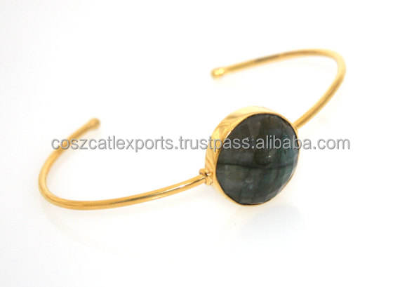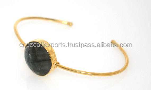 Pulsera inteligente redonda de oro, brazalete de labradorita