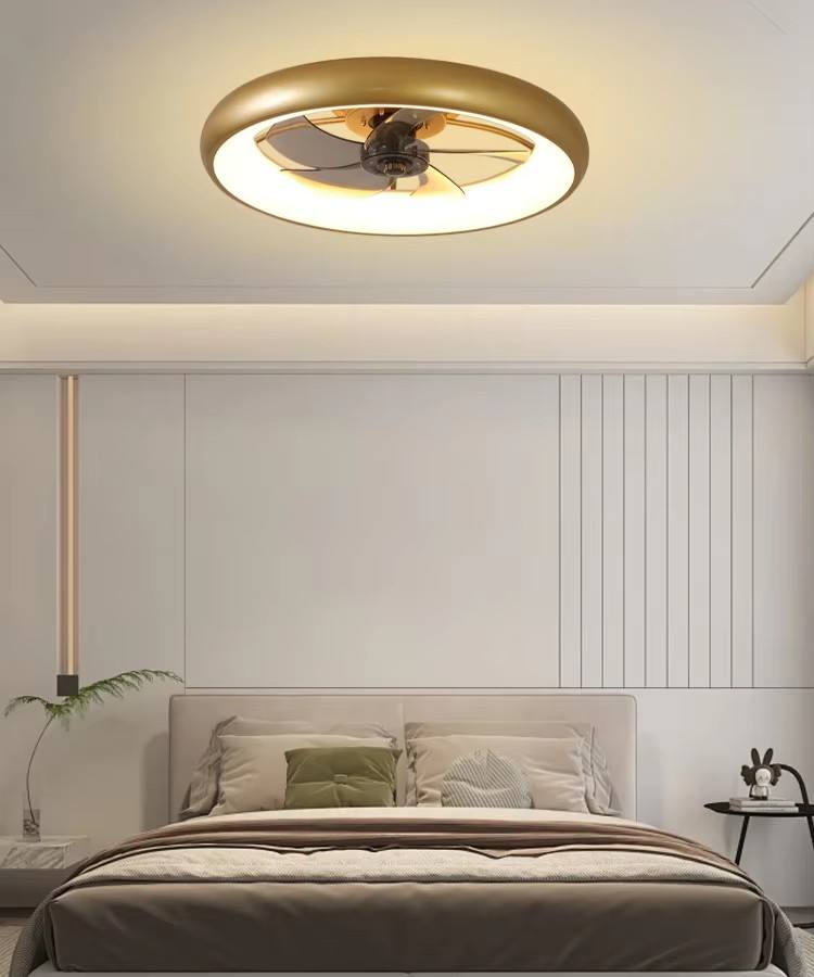 Ventilador de Techo Inteligente para Dormitorio, Ultra Silencioso (<30dB) con Temporizador Automático, Montaje Empotrado, LED de 5 Aspas Regulable, Control por Aplicación y Control Remoto