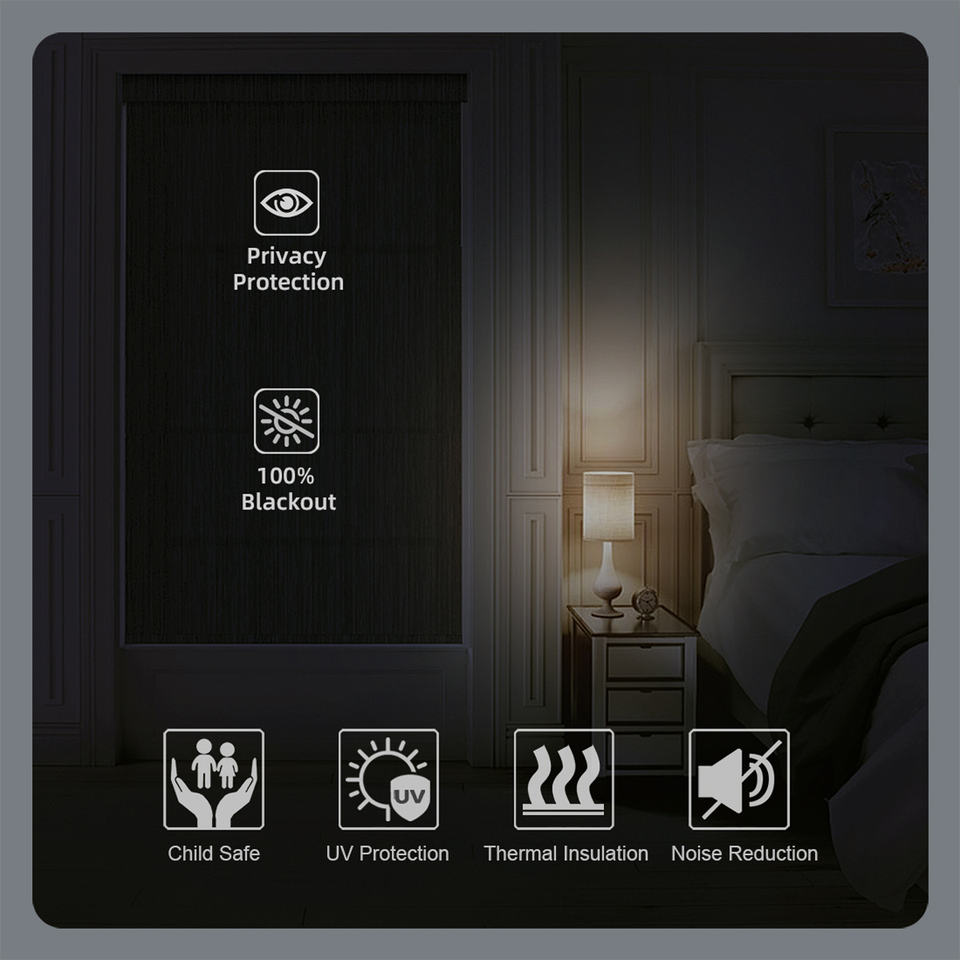 Persianas enrollables con protección UV opacas inalámbricas de diseño moderno motorizadas para dormitorio y uso en interiores