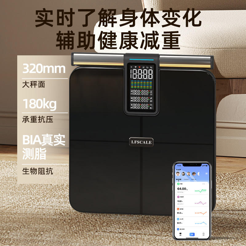 Báscula corporal inteligente con pantalla LCD de 320 mm, conectividad Bluetooth y Wifi para uso en el gimnasio en casa, sensor de alta precisión, funciona con batería.