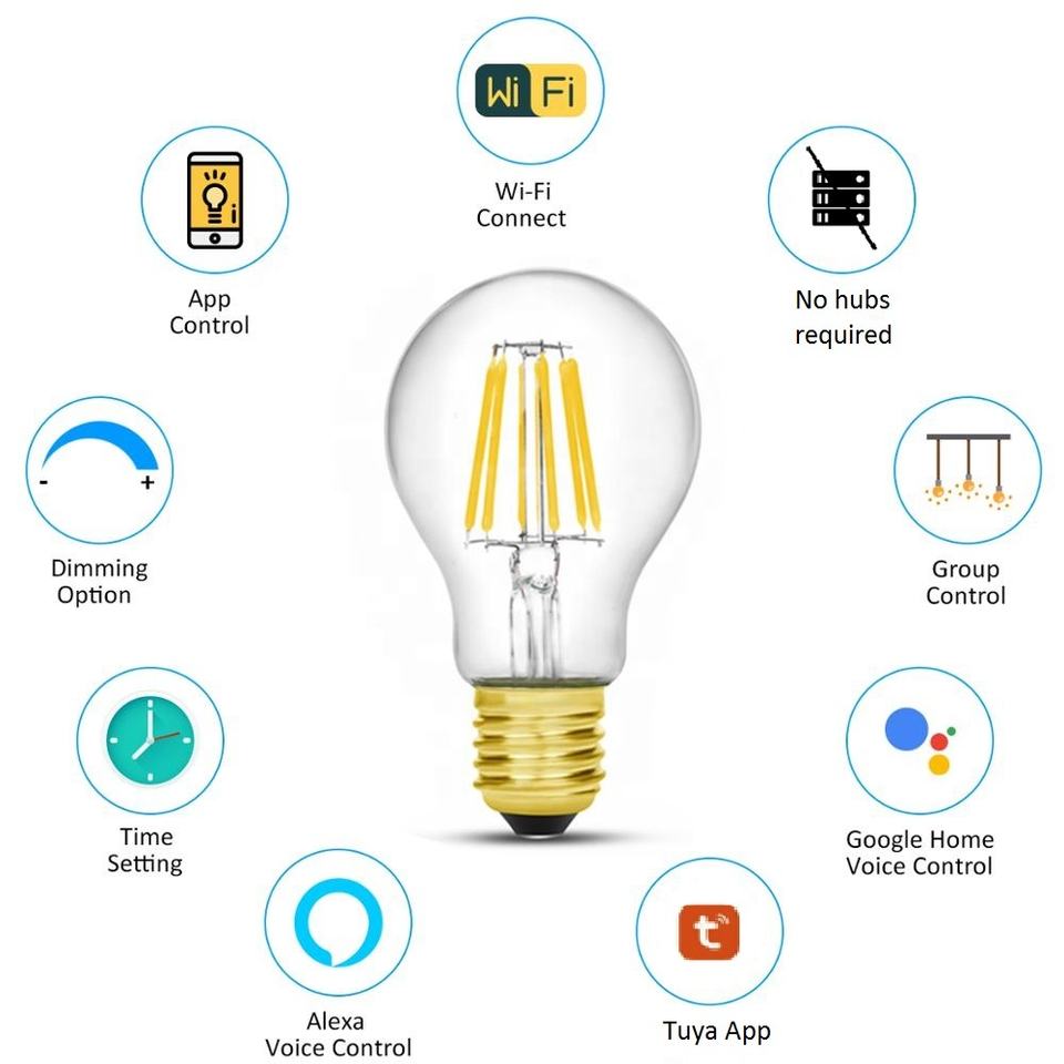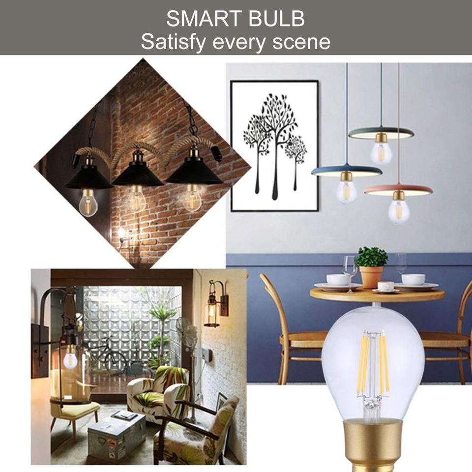 Bombilla Inteligente Alexa Wifi, Control de Iluminación Inteligente, Luces LED de Vidrio Alexa y Google, Luces LED de 80 LED, Bombilla de Filamento para Techo, Bombilla de Corriente Continua