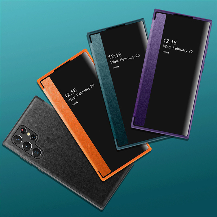 Funda de teléfono con cubierta de Ventana de vista clara inteligente para Samsung S10 S10 Plus S22ultra S23Ultra Funda de cuero con tapa