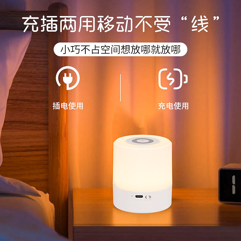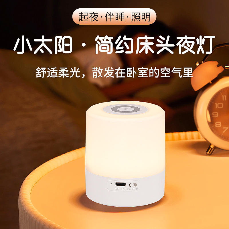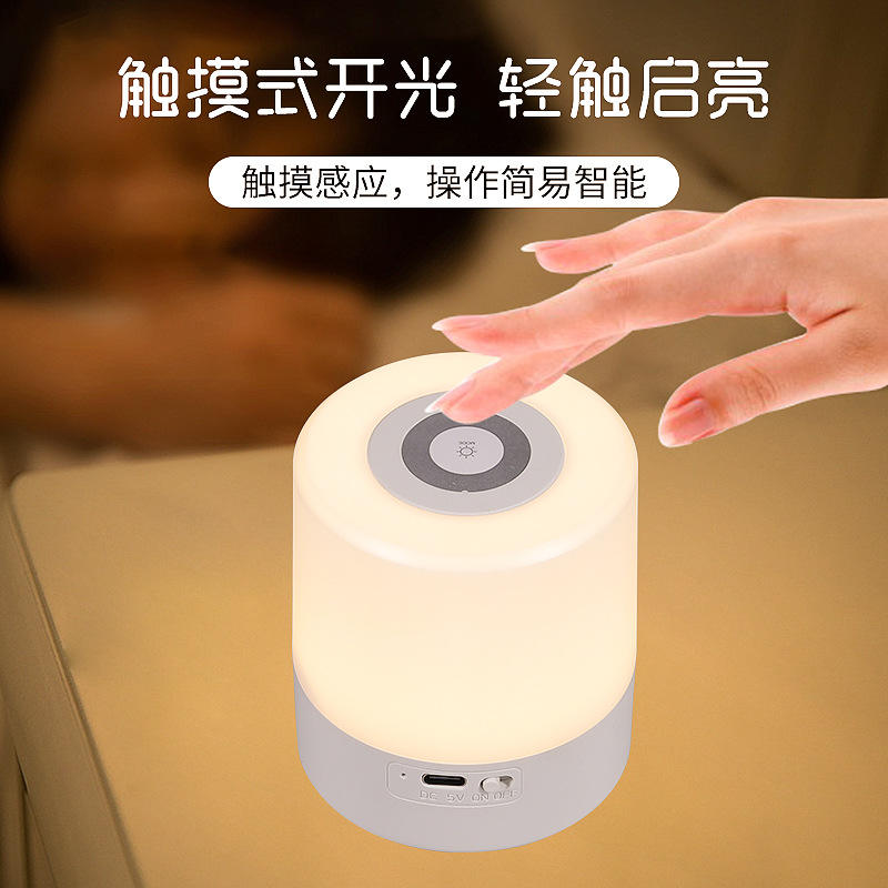 Lámpara de Noche Inteligente para Escritorio, Control Táctil LED, Recargable por USB, Forma Redonda, Lámpara de Noche para Dormitorio