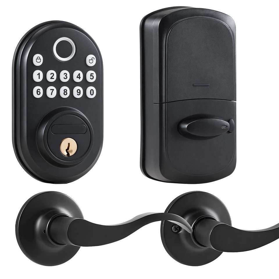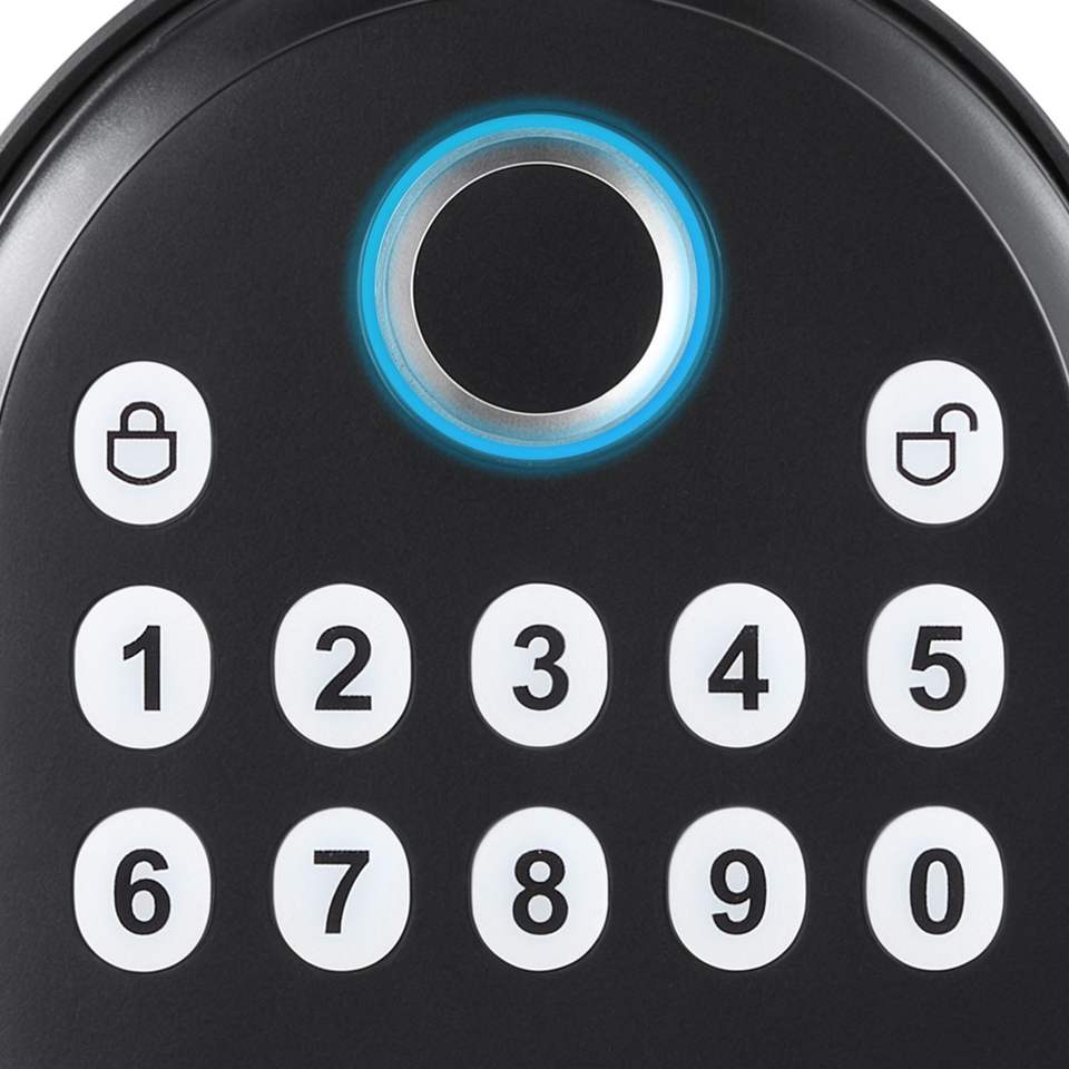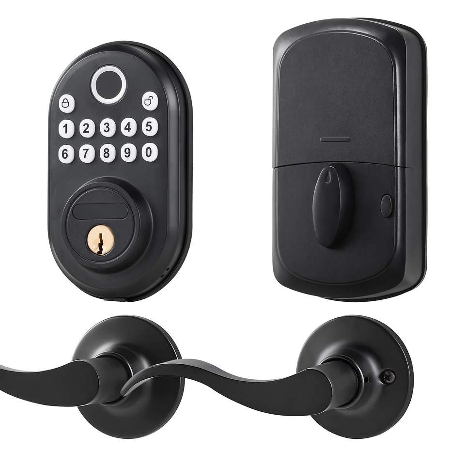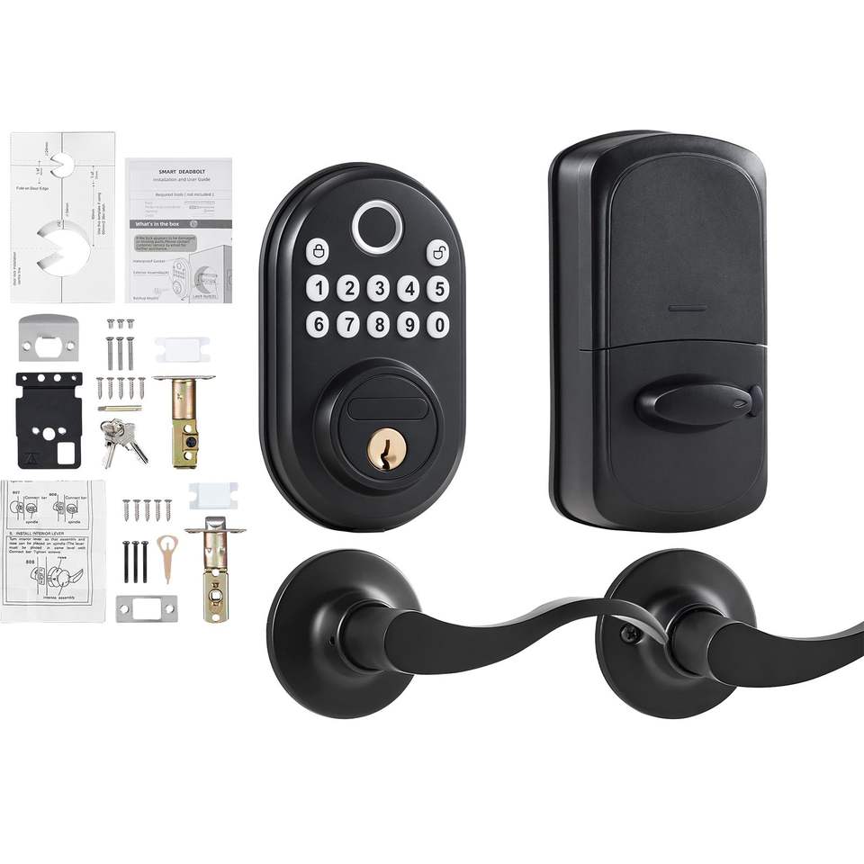 Cerradura Inteligente para Puerta con Huella Dactilar, Teclado, Código, Acceso con Llave, Contraseña Anti-Espionaje de Un Solo Uso, Modo de Desbloqueo Constante - Manijas de Nivel Superior