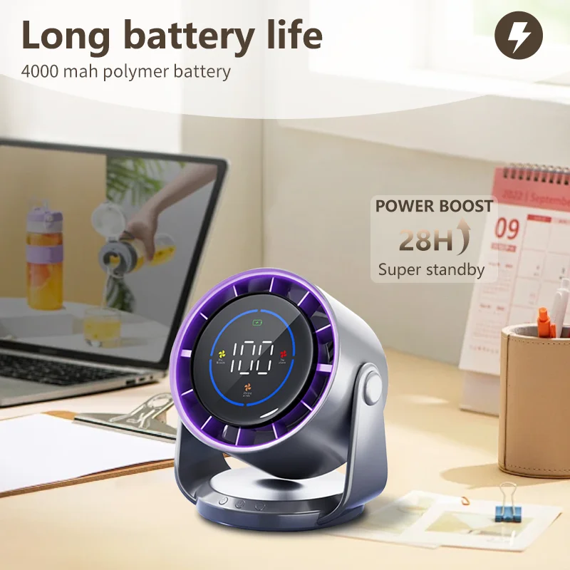 Ventilador Eléctrico Inteligente Portátil de Escritorio, Recargable por USB, Silencioso, de Pared, con Función de Enfriamiento