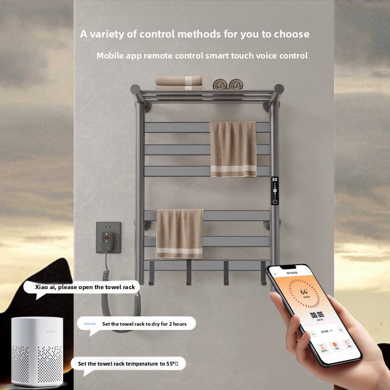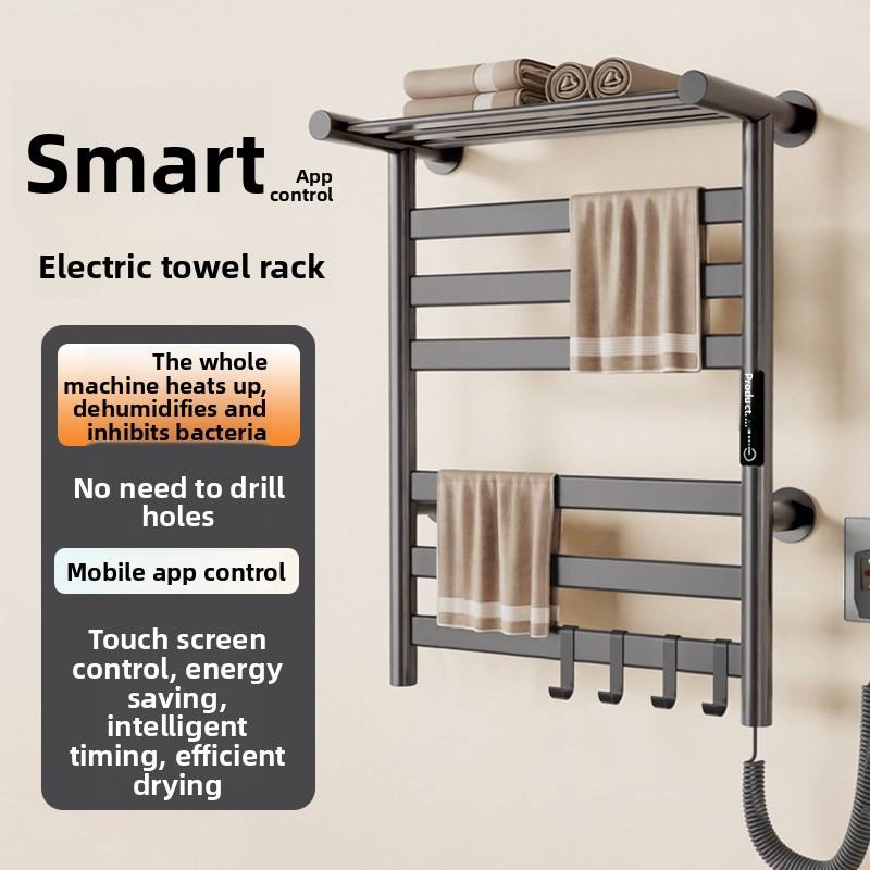 Toallero Eléctrico Inteligente con Superficie Pintada, Diseño Sencillo, Sin Necesidad de Perforación, Calienta y Seca Toallas para Baño y Vestidor