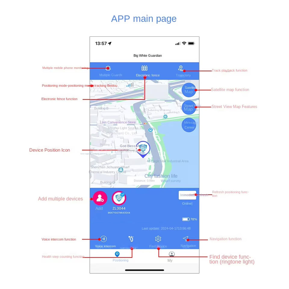 Localizador GPS Inteligente para Mascotas, de Plástico, con GPRS, Multimodo, Medidor Preciso, Búsqueda Inteligente de Mascotas, Navegación con un Toque, Resistente al Agua IPX7