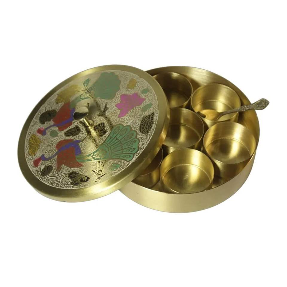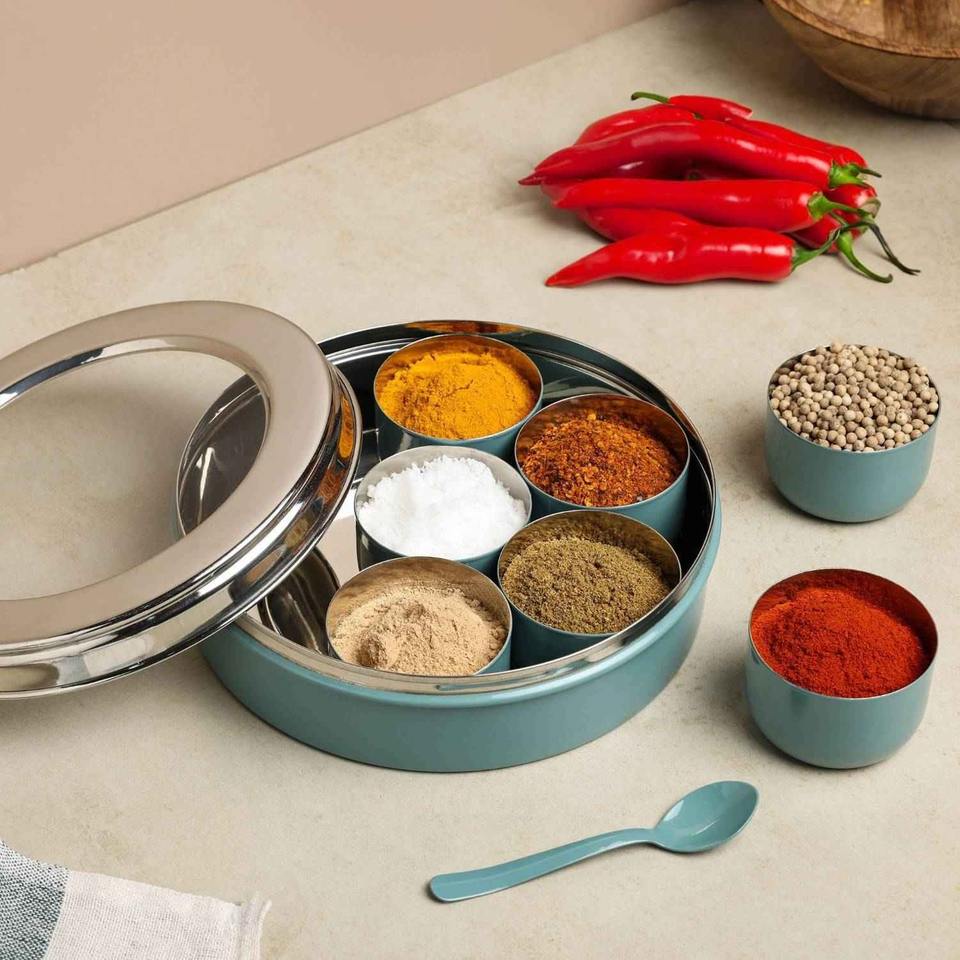 Caja de Almacenamiento de Especias de Metal Hecha a Mano, Tapa Decorativa, Organizador de Masala Moderno para Cocina, Contenedor de Alta Calidad