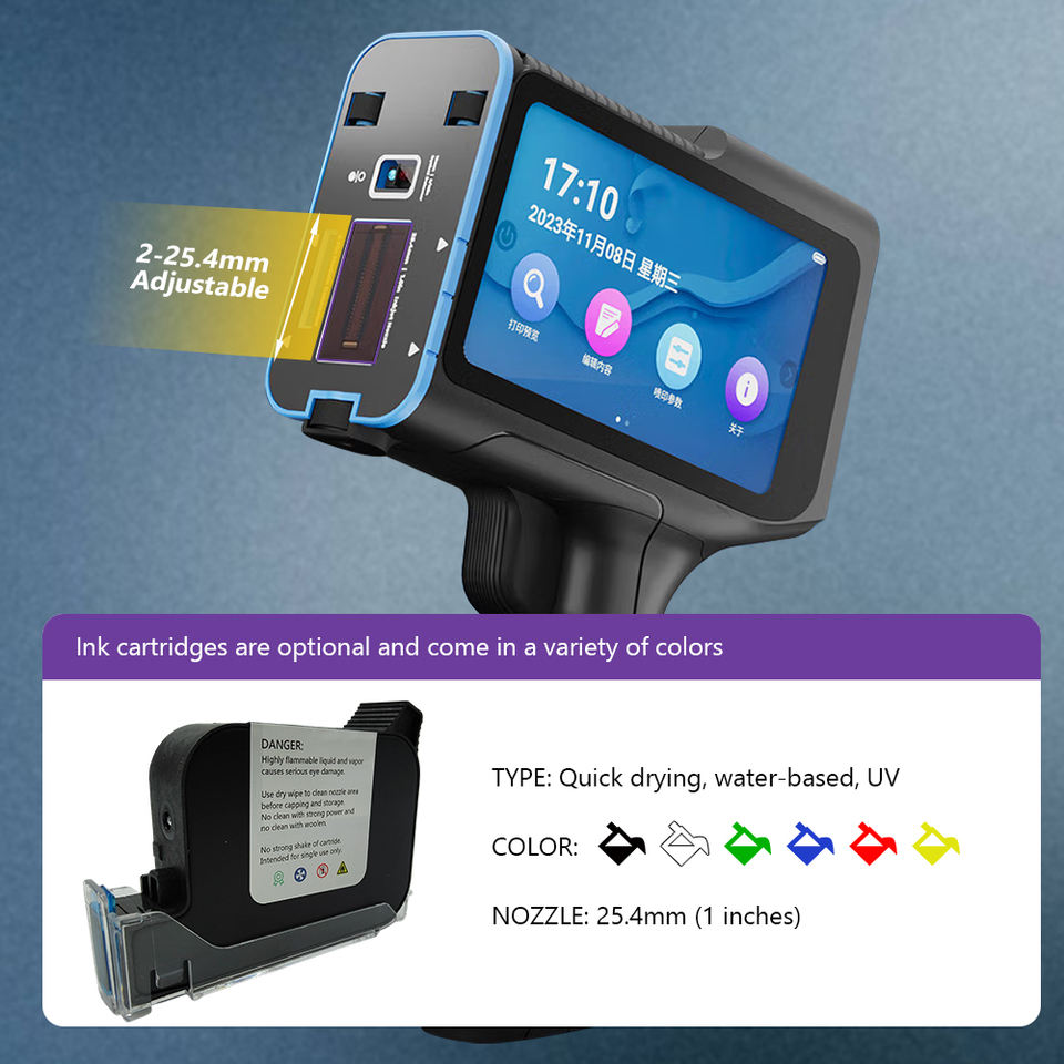Impresora de Inyección de Tinta Portátil Inteligente, Altura Ajustable de 2-12.7mm, Equipo de Impresión para Marcar Texto, Códigos QR, Códigos de Barras, Fechas y Gráficos