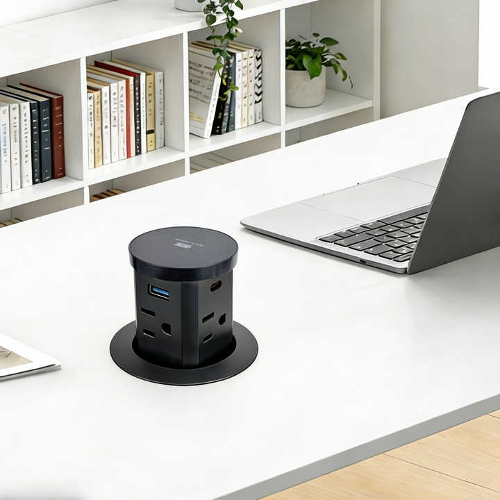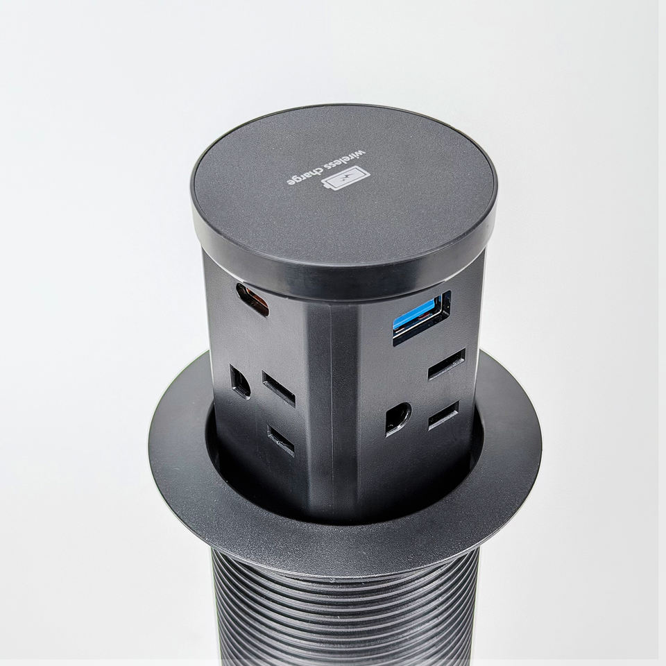 Enchufe de Mesa Inteligente para el Hogar, Material ABS, con Carga Rápida USB y Cargador Inalámbrico de 15W, Enchufe Emergente Neumático para Cocina