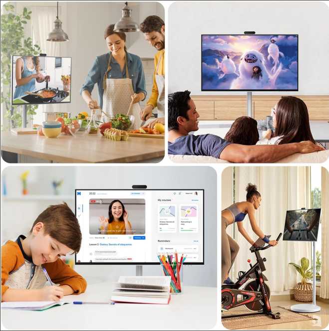 Dispositivo inteligente para el hogar Tv 32 pulgadas 4K 8 + 128GB Monitor táctil Incell con altavoces Piso de pie sobre ruedas como asistente de Fiesta Móvil