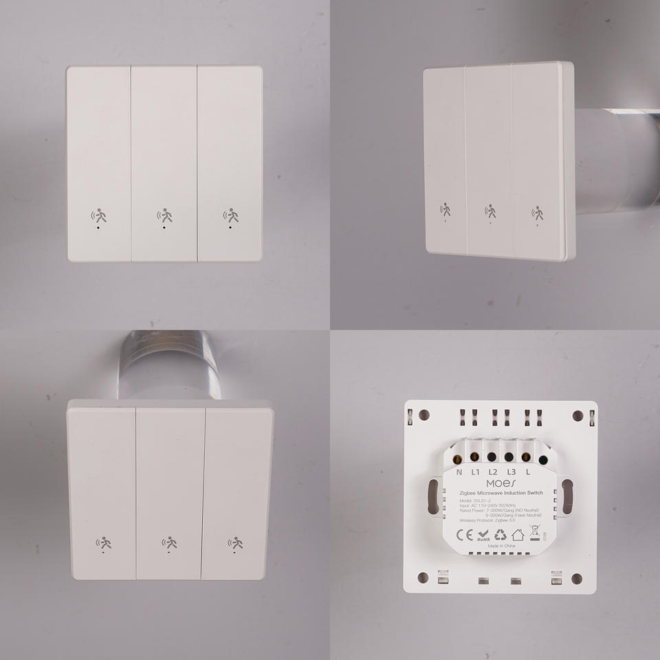 Interruptor Inteligente con Sensor de Presencia Humana para Hogar, Wi-Fi, 123 Vías, Panel de PC Ignífugo Blanco, 10A, 90-245V