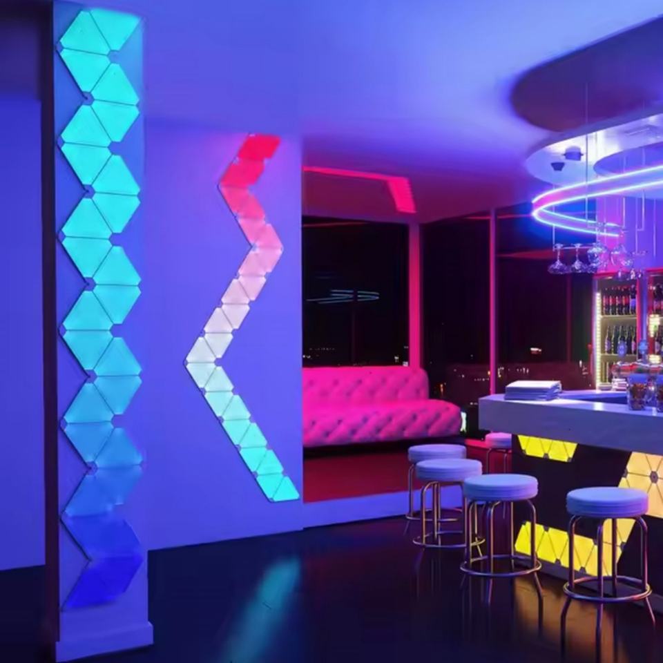 Lámpara Inteligente para el Hogar, Paneles LED Triangulares ABS RGBIC, Sincronización con Juegos, Luces de Ambiente Blancas para Pared, Control por Voz, Estilo Minimalista para Apartamento o Bar