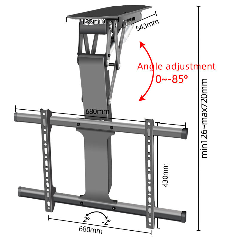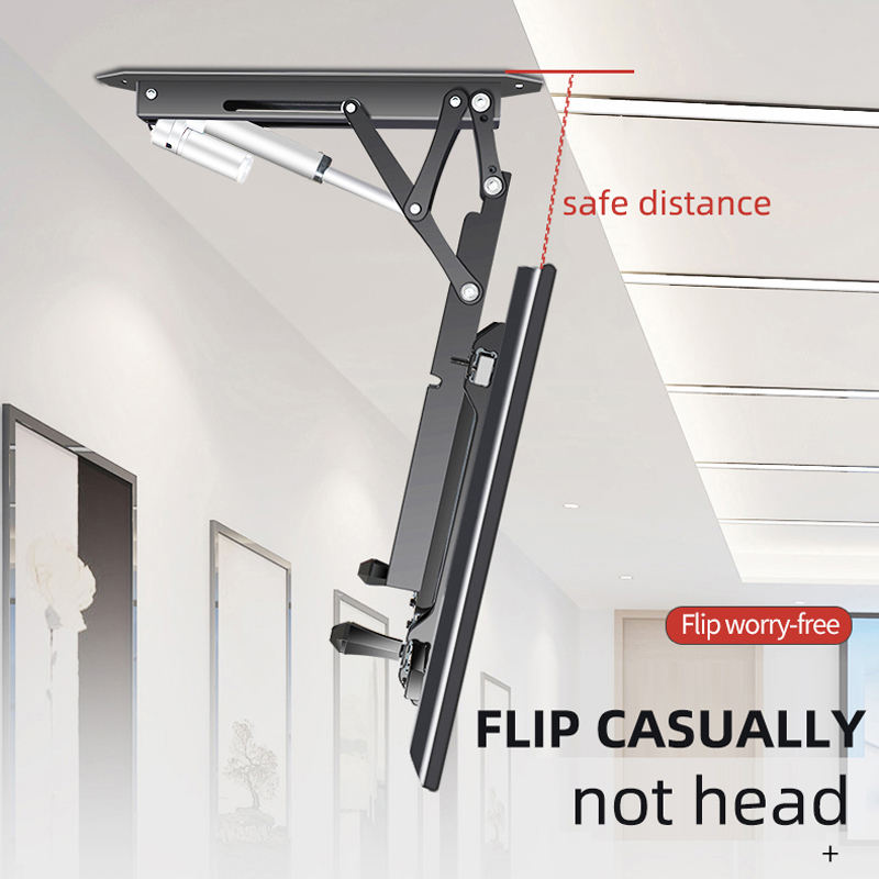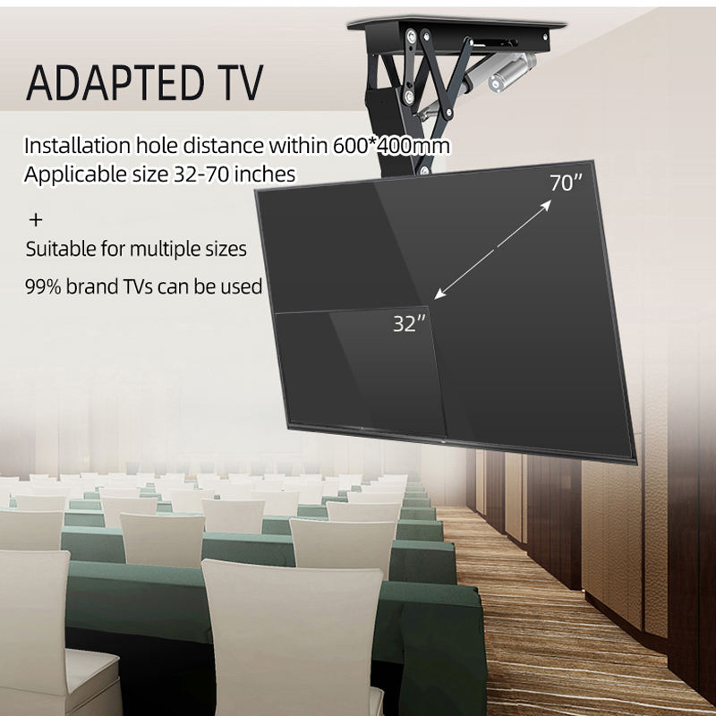 Smart Home TV motorizada Montaje en el techo Control remoto Inclinación Función de altura ajustable Soporte de acero de distancia plana