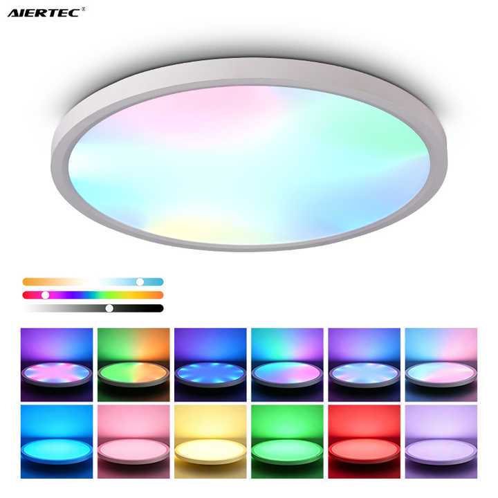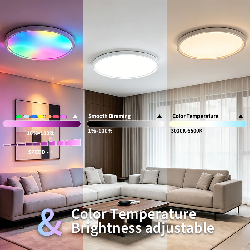 Lámpara de Techo LED RGB Inteligente para el Hogar, Control Remoto por Aplicación, Regulable, Moderna, con Cambio de Color, Montaje en Superficie, para Iluminación Interior
