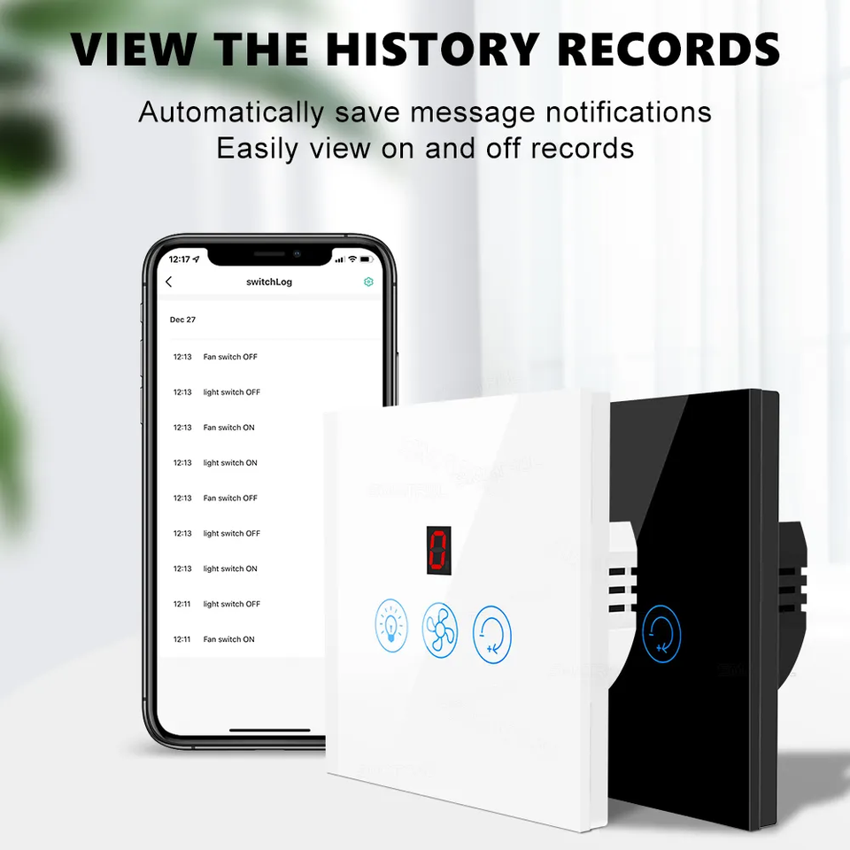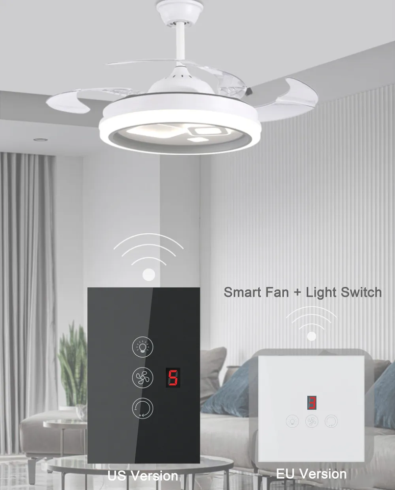 Interruptor táctil de luz de ventilador WiFi Smart Home con Red NFC 240V máx. Control de sincronización temporizado de voltaje y reglas de pared de idioma de la aplicación